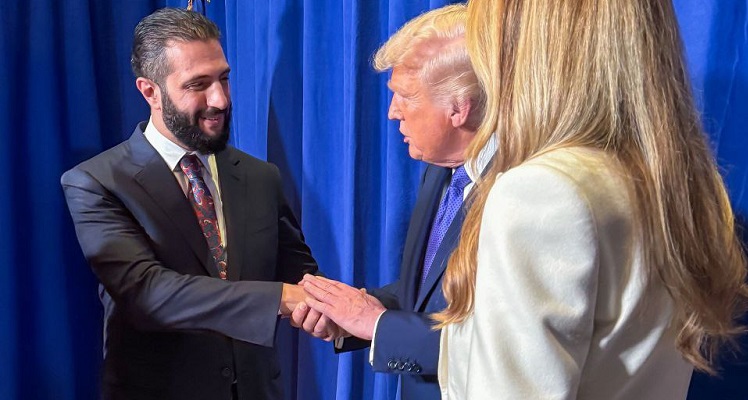التقى الرئيس السوري، أحمد الشرع، الرئيس الأميركي دونالد ترامب على هامش أعمال الدورة الثمانين للجمعية العامة للأمم المتحدة في نيويورك. وذكرت وكالة الأنباء السورية الرسمية (سانا) في ساعة مبكرة من صباح اليوم الخميس أن الشرع التقى ترامب خلال حفل استقبال أقامه الرئيس الأميركي على هامش أعمال الجمعية العامة، بحضور زوجته ميلانيا ترامب.