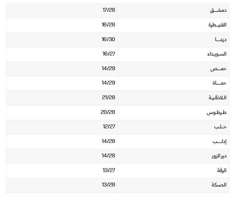 درجات الحرارة المتوقعة في المحافظات السورية..