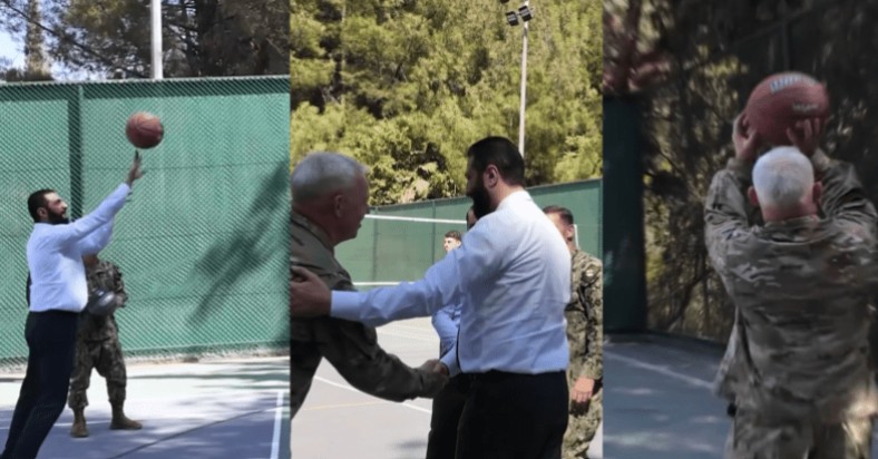 أظهر مقطع مصوّر الرئيس السوري أحمد الشرع ووزير الخارجية أسعد الشيباني وهما يلعبان كرة السلة داخل ملعب حديقة تشرين وسط العاصمة دمشق، إلى جانب عدد من كبار القادة العسكريين الأميركيين. وحدّد الناشط المختص بالخرائط المعروف باسم "سمير" على منصة "إكس" موقع الملعب بعد مقارنة لقطات الفيديو بصور ملتقطة بالأقمار الاصطناعية، إذ يقع الملعب داخل حديقة تشرين القريبة من ساحة الأمويين، إحدى أبرز نقاط العاصمة السورية.