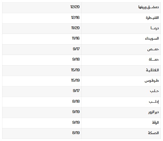 درجات الحرارة العظمى والصغرى المتوقعة في المحافظات السورية..