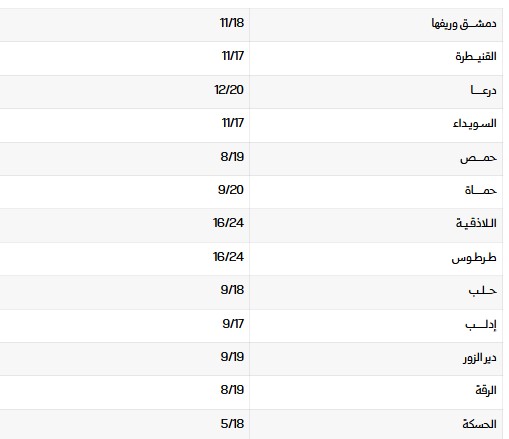 درجات الحرارة الصغرى والعظمى المتوقعة في المحافظات: