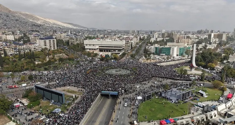 ملأ عشرات الآلاف من السوريين، ساحة الأمويين في العاصمة دمشق، احتفالاً بالذكرى الأولى لسقوط النظام السابق. فيما اكتظت شوارع العاصمة بالمحتفلين حتى ساعات متأخرة من الليل، وسط ازدحام كبير.
