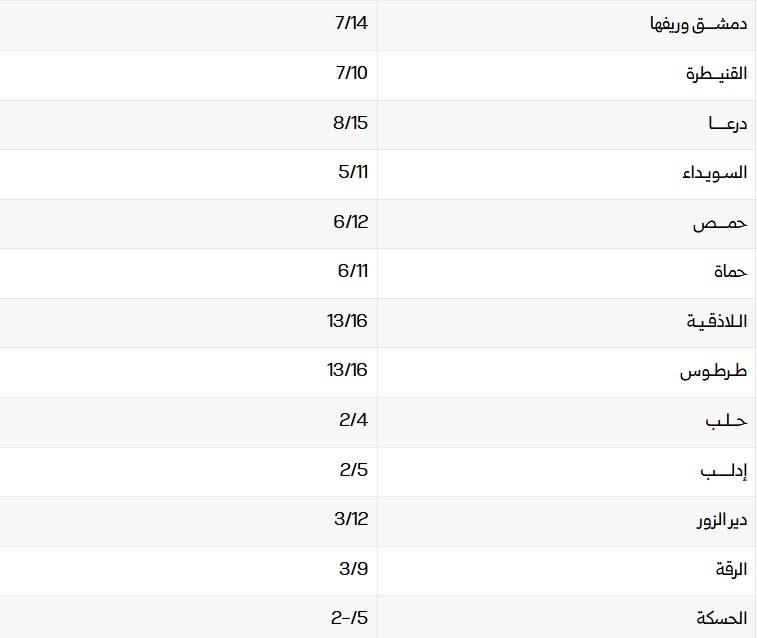 الطقس.. انخفاض في درجات الحرارة وهطولات مطرية في عموم المناطق السورية