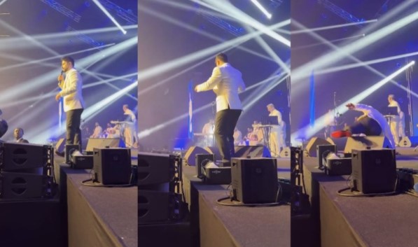 تعرض المطرب السوري ناصيف زيتون لموقف محرج خلال إحيائه حفل رأس السنة 2026 في العاصمة الإماراتية أبوظبي، بعدما تعثر وسقط على خشبة المسرح في أثناء تقديم فقراته الغنائية، في لحظة وثقتها عدسات الجمهور وانتشرت سريعاً على مواقع التواصل الاجتماعي. وظهر ناصيف زيتون في مقطع فيديو متداول وهو يتعثر بأحد مكبرات الصوت على مسرح Space42 Arena، قبل أن يسقط أرضاً وسط ذهول الحاضرين، ثم ينهض سريعاً ويواصل الحفل من دون توقف، في مشهد لفت الأنظار وتحول إلى حديث الجمهور خلال الساعات اللاحقة.