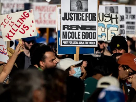 تظاهر الآلاف في مدينة مينيابوليس الأميركية للمطالبة برحيل قوات الهجرة الفدرالية من المدينة ورفع المتظاهرون شعارات ترفض استمرار حملة اعتقالات تشنها الحكومة الفدرالية ضد المهاجرين غير القانونيين في المدينة، ونددوا بمقتل سيدة برصاص ضابط هجرة وطالبوا بمحاسبته. وهتف المتظاهرون باسم رينيه نيكول غود (37 عاما) وهي المرأة التي قُتلت برصاص عنصر في إدارة الهجرة والجمارك في المدينة التابعة لولاية مينيسوتا، وسط غضب عارم من استخدام القوة في حملة القمع التي تقودها إدارة الرئيس الأميركي دونالد ترامب ضد الهجرة. وتحدّى الآلاف البرد القارس وتدفقوا إلى متنزه مغطى بالثلوج للتجمّع قرب موقع إطلاق النار، ورفعوا لافتات تطالب بخروج إدارة الهجرة والجمارك من مينيسوتا.