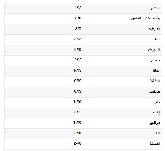 درجات الحرارة الصغرى والعظمى في المحافظات: