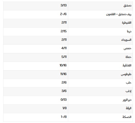 درجات الحرارة العظمى والصغرى في المحافظات السورية: