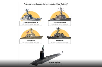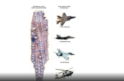 وتضم مجموعة الحاملة أسرابا من طائرات F-35 الشبحية القادرة على اختراق أنظمة الدفاع الجوي المتقدمة، إضافة إلى مقاتلات إف إيه 18 F/A-18 سوبر هورنت، وطائرات إي إيه-18جي EA-18G غراولر المتخصصة في الحرب الإلكترونية،