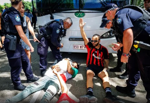 قام متظاهرون بالوقوف أمام حافلة المنتخب الإيراني للسيدات لكرة القدم من أجل منع الفريق من مغادرة الفندق في غولد كوست الأسترالية، لحماية اللاعبات من العودة إلى إيران خوفاً من الاعتداء عليهن من قبل النظام في البلاد. وبحسب التقرير الذي نشرته صحيفة "ديلي ميل" البريطانية، بدا أن إحدى لاعبات المنتخب الإيراني تبكي وكأنها تجر إلى الحافلة في مشاهد فوضوية، بينما حاول المتظاهرون منع الفريق من العودة إلى إيران.