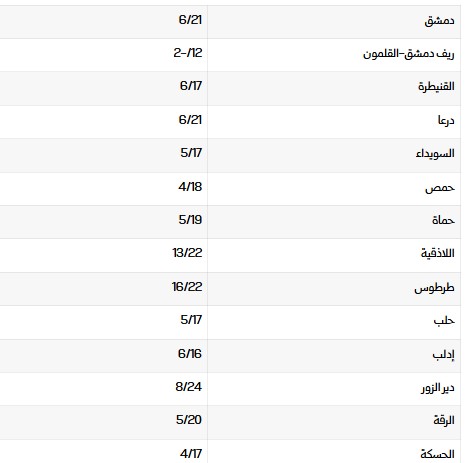 درجات الحرارة العظمى والصغرى في المحافظات السورية..