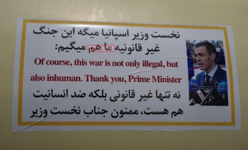 أفادت وكالة "تسنيم" الإيرانية بأن إيران بدأت بوضع ملصقين على صواريخها تحمل صورة لرئيس الوزراء الإسباني بيدرو سانشيز مصحوبة بتصريح له ينتقد فيه الحرب ضد إيران.