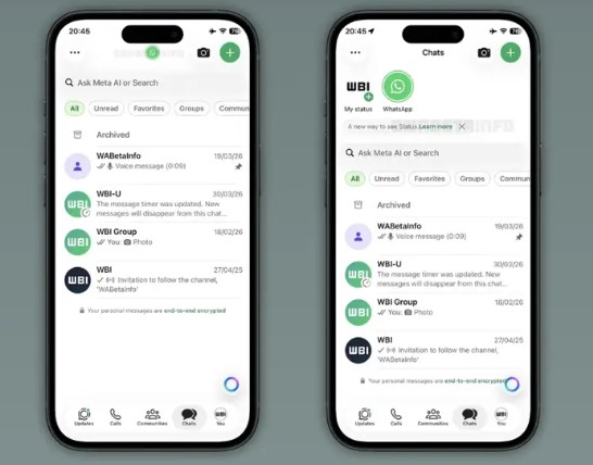 يعمل تطبيق واتساب، المملوك لشركة ميتا، على تغيير رئيسي في تصميم التطبيق لمستخدمي نظام أندرويد. وكشف أحدث إصدار تجريبي من "واتساب" لنظام أندرويد أن التطبيق سيقوم بعرض تحديثات الحالة في أعلى قسم المحادثات.