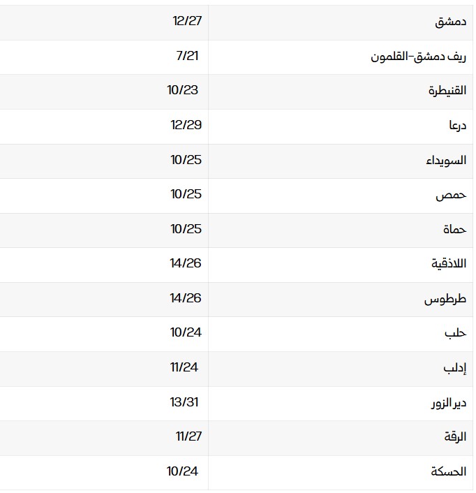 درجات الحرارة المتوقعة في المحافظات السورية
