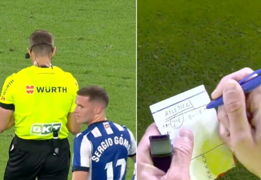 وظهرت ورقة صغيرة كتب أعلاها "أتلتيكو" دون فيها الحكم الرقم 24 الذي يعود للاعب المنذر، ثم كتب الحكم بأسلوبه الخاص سبب الإنذار "Def=3″، والتي يفترض أنها تشير إلى "تدخل دفاعي رقم 3″، وهو ما سيتضح لاحقا من خلال التقرير النهائي لحكم المباراة وفق ما ذكرت صحيفة "ماركا" (Marca) الإسبانية. وعلقت الصحيفة: "لقطة لم تر من قبل في مجال التحكيم"، وأضافت: "لأول مرة أمكن مشاهدة ملاحظات الحكم وهو أمر كلاسيكي". وخلال التحية بين قائدي الفريقين قبل انطلاق المباراة سمع الحكم وهو يقول "أنتم ستبدؤون، حسنا؟”، موجها حديثه إلى ميكيل أويارزابال قائد ريال سوسيداد، كما نبههم إلى ضرورة التحدث معه باحترام كشرط لسير المباراة.