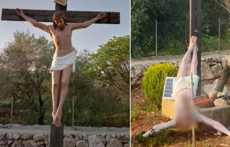 وكان رئيس الوزراء الإسرائيلي بنيامين نتنياهو قال، "لقد صدمت وحزنت عندما علمت أن جنديا من الجيش الإسرائيلي ألحق ضررا برمز ديني كاثوليكي في جنوب لبنان"، متعهدا باتخاذ "إجراءات تأديبية صارمة" بحق المتورطين. وأشعلت لقطة مصورة لجندي إسرائيلي وهو يهشم رأس تمثال لـ"السيد المسيح" بمطرقة، بعد إسقاطه من موقعه في قرية بجنوب لبنان، موجة غضب عارمة عالمية على منصات التواصل، وعقب تشكيك أولي في صحة الصورة، أقر الجيش الإسرائيلي بمسؤولية جنوده عن هذا الانتهاك بعد تحقيق رسمي، وقدم وزير الخارجية الإسرائيلي اعتذار تل أبيب عن الواقعة.