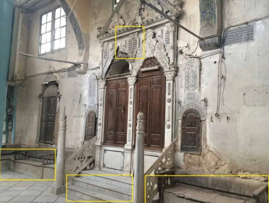 كما كشف التحقق عن وجود تشوهات في تفاصيل الزخارف والنقوش المحيطة بالباب، وهي من العلامات الشائعة في الصور المولدة رقميا، حيث تبدو الأنماط غير متناسقة أو غير مكتملة.